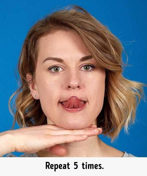 4、伸出舌頭,想像舌頭可以碰到鼻子,重復動作5次,這個動作可以消除雙下巴喔!