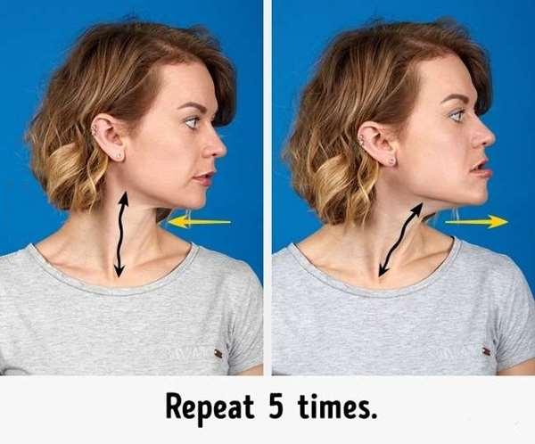 1、把頭轉向左側,下巴往外移到脖子有拉緊的感覺即可,然後再轉到右側重復一樣的動作。左右兩邊各做5次,就能夠讓臉部線條變緊,有拉提的效果!