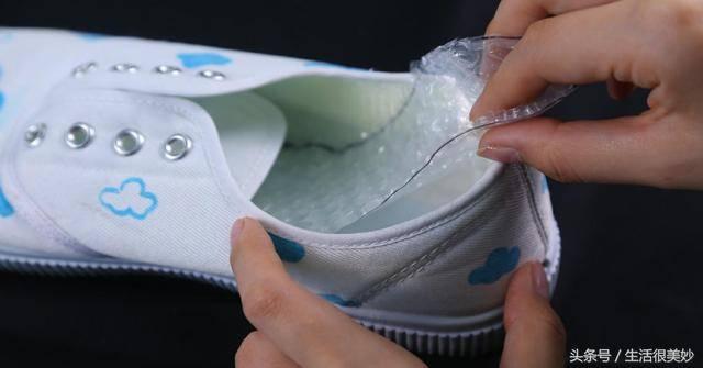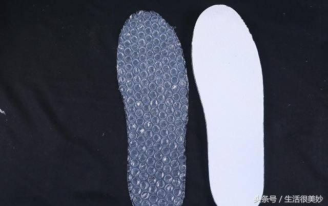 把氣泡墊剪下來放在鞋墊下麵可以防止鞋墊亂跑,又使鞋底變軟還能防潮保暖。