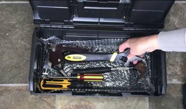 是不是每次看到工具箱裡的東西亂七八糟的心情都不好了,墊一層氣泡墊在底部,輕易解決。