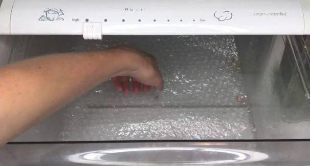 這時候我們只需要剪一塊冰箱抽屜的大小的氣泡墊,墊在底部就好啦,你會發現它們從此變乖了,再也不亂動了!