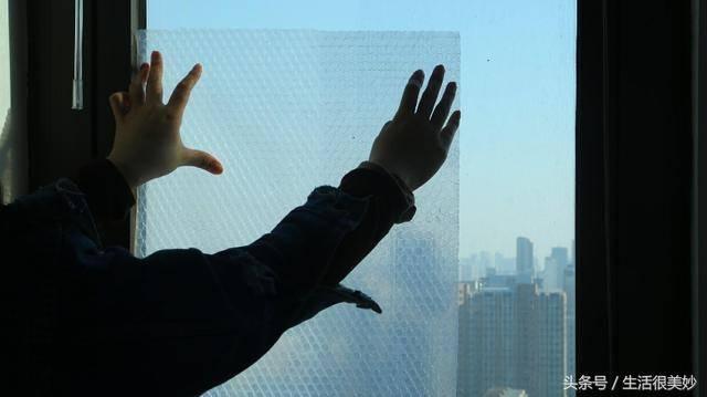 把氣泡墊貼在窗戶上既能保暖又能保護隱私。