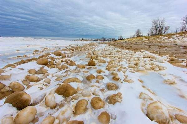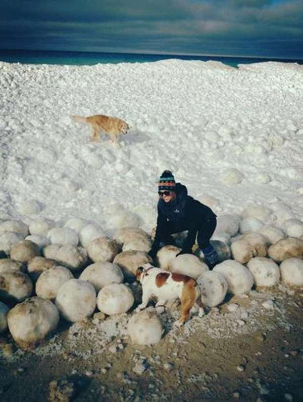 但其實在海邊發現冰球俄羅斯並不是第一遭,過去在美國密歇根州的Sleeping Bear海岸也曾出現滿滿的巨大冰球,這些冰球甚至跟遊客所遛的英國鬥牛犬一樣高,然而專家則表示其實海邊會出現冰球是很正常的一件事,民眾不用過於緊張。