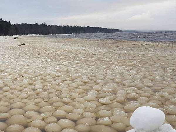 俄羅斯網友尤里(Yuryi Shahov)不久前在俄羅斯西北部的芬蘭灣(Gulf of Finland)看到了非常驚人的一幕,只看到海岸上佈滿著大小不一的冰球,這些冰球最大的直徑可達17公分,看起來相當特別。