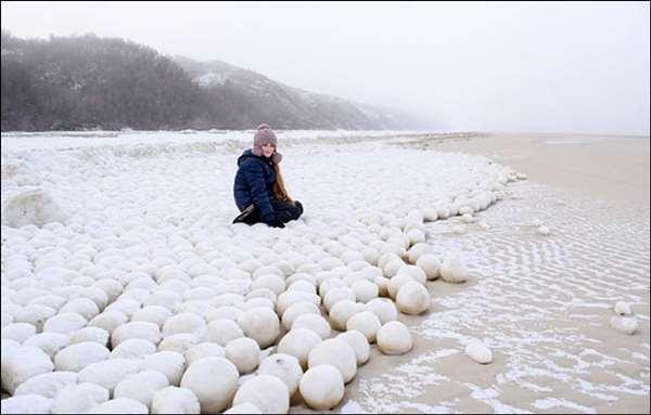 專家解釋當積雪經過冰冷的空氣並沒有融化時就會越結越冰,越來越硬,然而當海水沖刷積雪時,把邊邊角角的冰塊給沖碎,最後海浪不停地拍打,讓巨大碎冰越滾越圓,最後就變成了在海岸上的冰球,如果有機會的話在其他會下雪的國家一樣看得到。