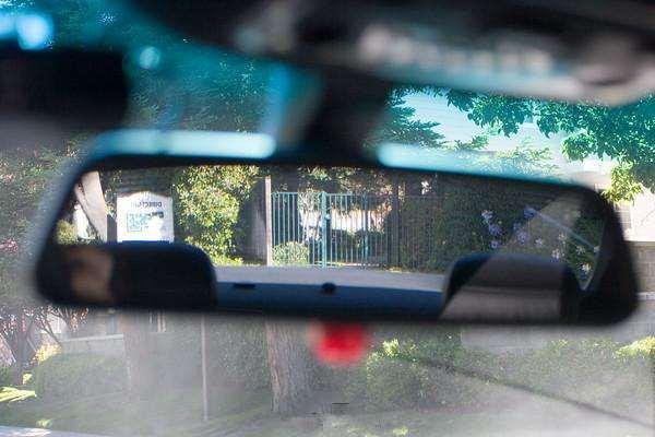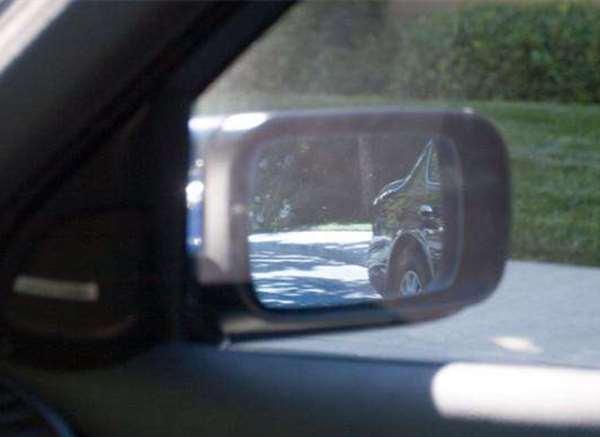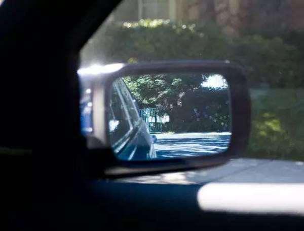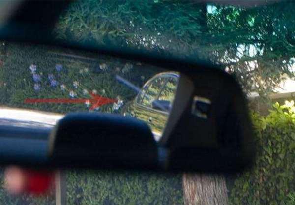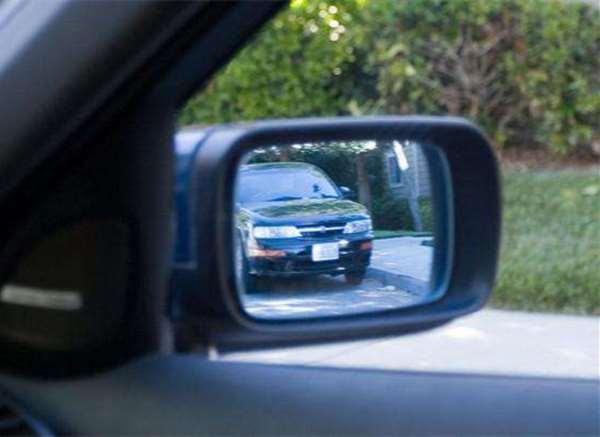 很驚訝吧!這台車停放的位置沒有變,但右側出現了一台車,這是之前根本看不到的。將車向前開3米左右,那台車出現在車內後視鏡裡。從這張圖片就可以看出,這台車從車尾到前門都在我們的視野之中。