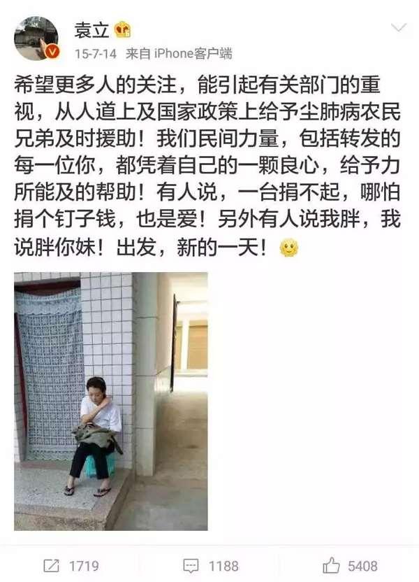 不像其他明星走馬觀花,袁立蹲坐在地上,和農民一起吃住。