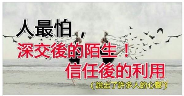 人最怕:深交後的陌生;認真後的痛苦;信任後的利用;溫柔後的冷漠;愛有天意,是否會眷顧自己;心有靈犀,為何總讓人無語。