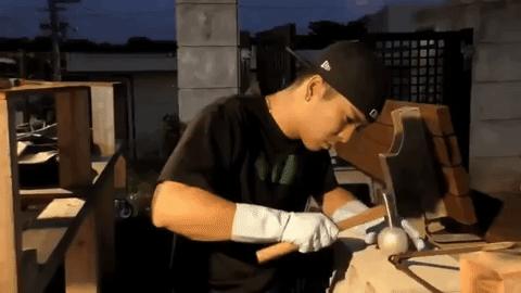 日本宅宅們的「打鐵」不是刻板印象中得要大汗淋漓的打鐵,也不是我們以為的開趴踢,而是認真的拿著小鐵鎚,乖乖的打出一顆鐵球來,體驗充當小鐵匠的樂趣,而想要在家打鐵也很簡單,除了一把打鐵的小鎚子,以及堅定的耐心和毅力,再來需要的就是一捲廚房用的鋁箔紙!