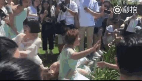 她一把推開推著柳岩的伴郎,然後一屁股坐在了柳岩的前面,頂住了後面的壓力,她更是吼出一句話: