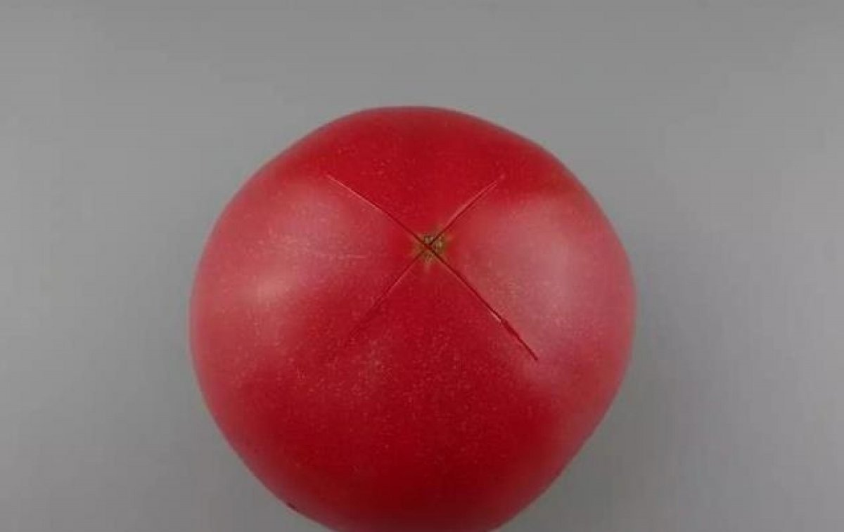 首先在西紅柿的頂部用刀劃個十字