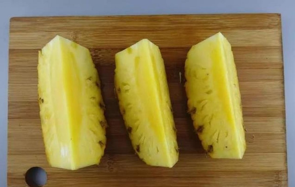再把一半鳳梨切分成三塊