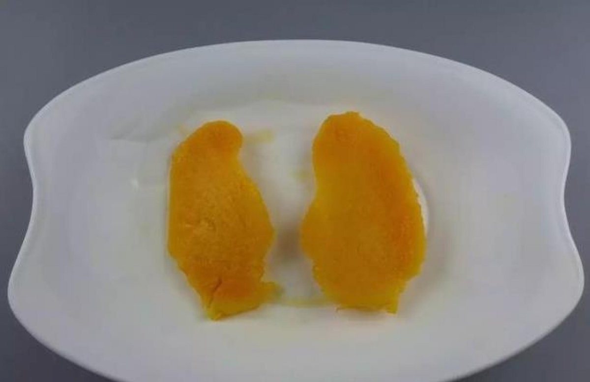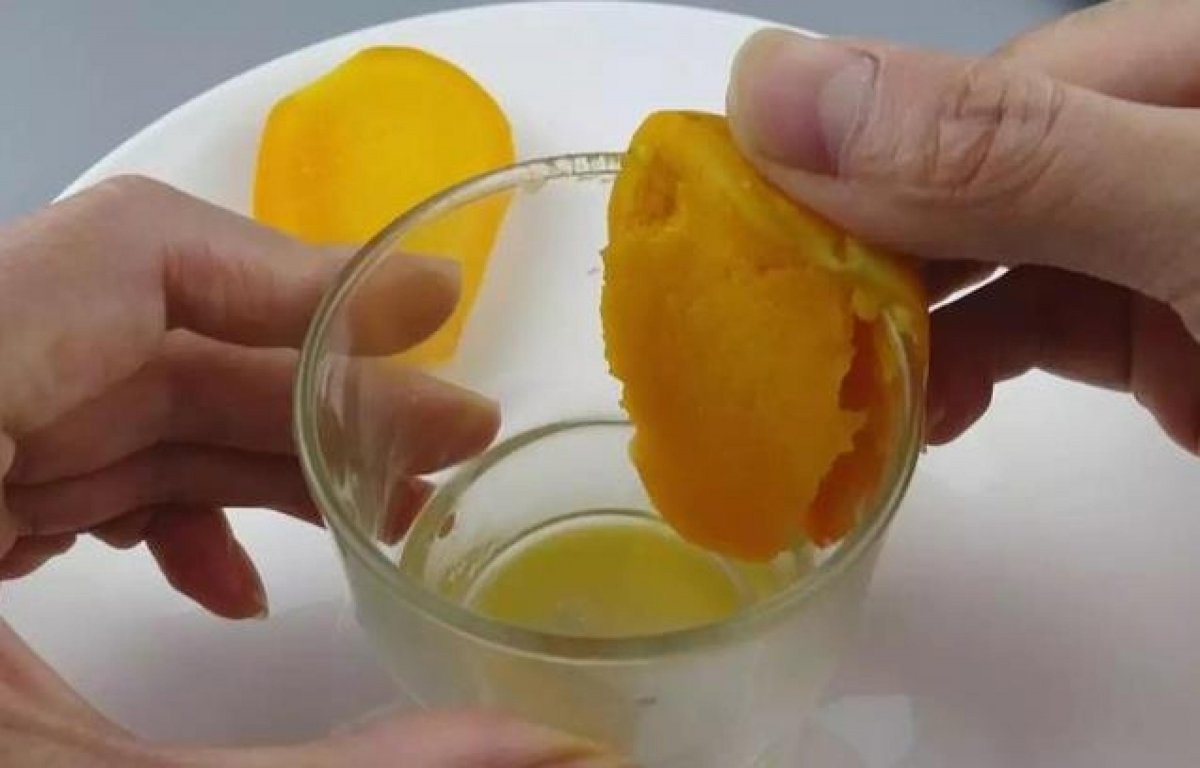 然後把芒果肉從杯子裡倒出來就行了