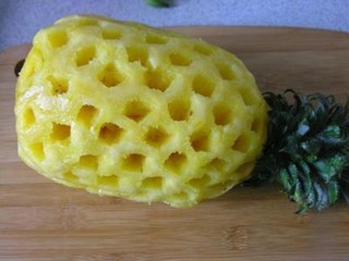 如此鳳梨果肉就變成一塊一塊的了