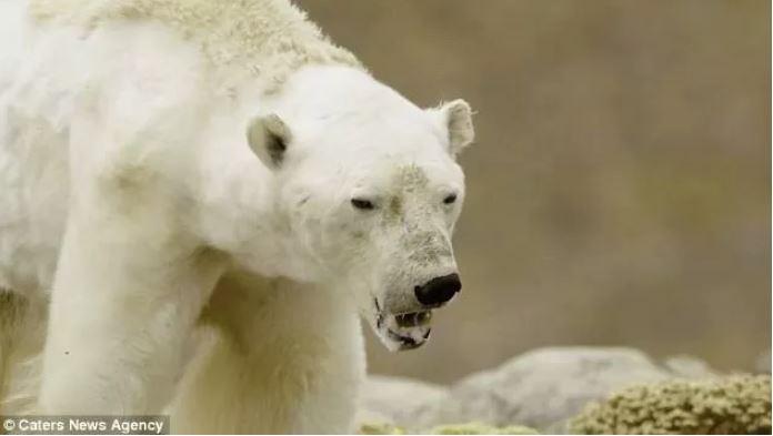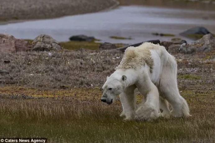 因為暖化導致兩極冰層融化,海豹也有空隙可以逃跑,很多健壯的北極熊因為捉不到獵物,不得不挨餓度過整個冬天,最後更因此餓死。