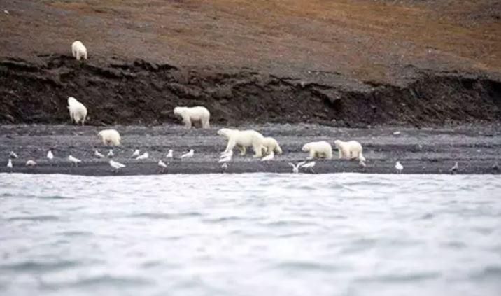 過去,這座島上經常可以拍到北極熊媽媽帶著小熊活動的畫麵,如今盛況卻已不再。