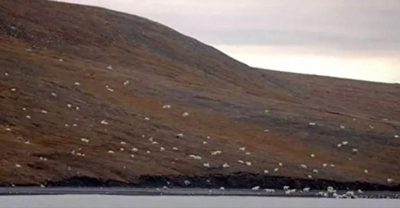 根據動保媒體The Dodo報導,日前一群乘坐觀光郵輪的乘客,在西伯利亞海岸拍到了這張照片,只見照片上散落無數白點,遠看還以為是綿羊群,但當乘客用望遠鏡仔細觀察後,發現了一個讓人心碎的真相。
