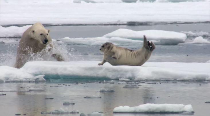 由於海豹在海中的行動遠比北極熊還靈活,下前速度也更快。