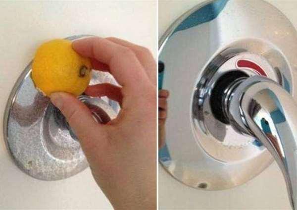 5、浴室裡的水漬怎麼洗都洗不掉?拿出半顆檸檬在水漬處擦拭,簡單清除水漬。