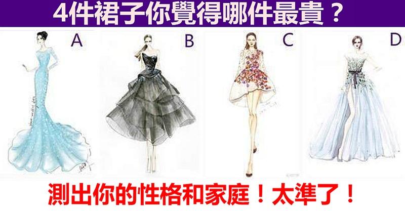 問題:四件裙子你覺得哪件最貴?