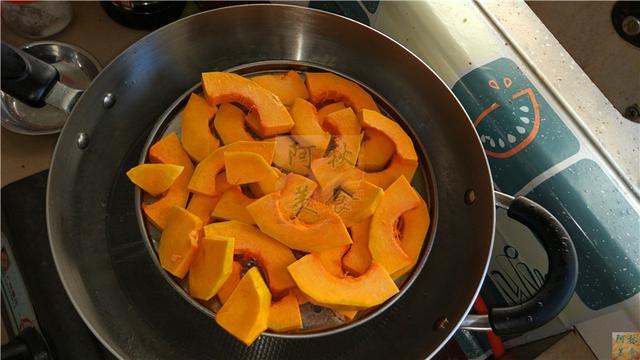 1、南瓜洗凈去皮去籽切塊,放熱水鍋裏隔水蒸軟。