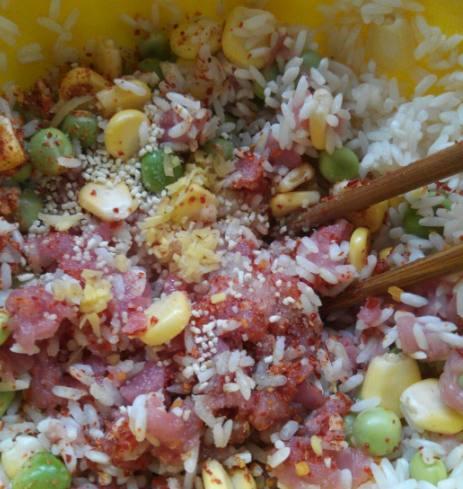 神仙蛋的做法其實很簡單,洗凈的糯米浸泡一個小時,然後瀝乾水分,加入臘肉,玉米,青豆與其混合,再加入自己喜歡的調料,喜歡辣椒的人可以加入辣椒粉!