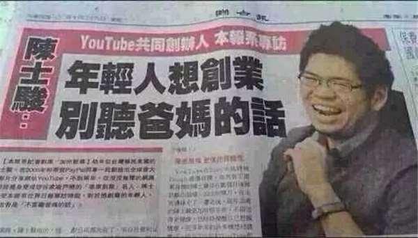 他就是被矽谷譽為「奇蹟」,被無數人稱之為「創業瘋子」的YouTube聯合創始人陳士駿。