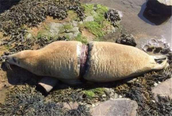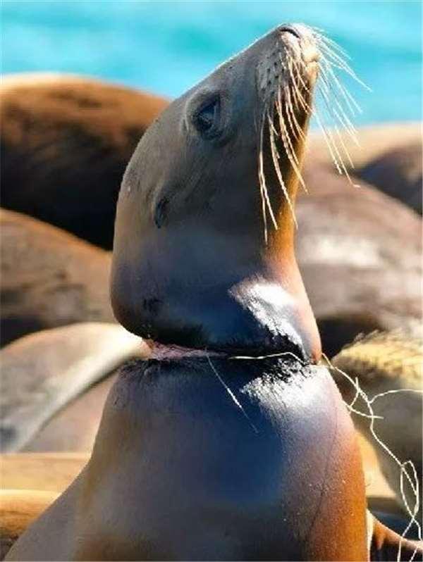 海洋裡靈活敏捷的海豹,也被塑膠垃圾纏身勒死。