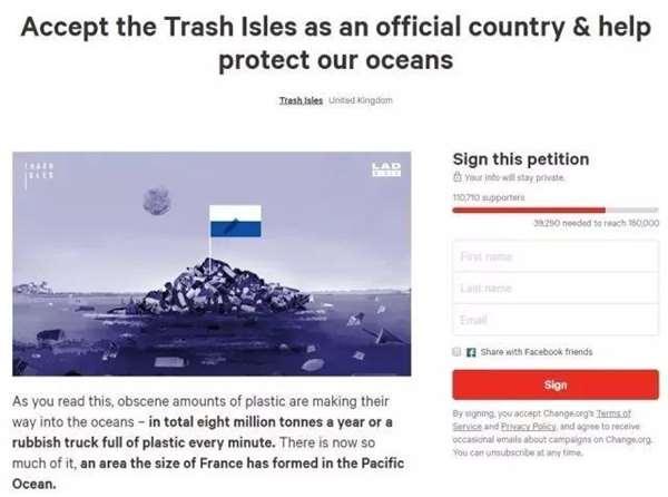 為了喚醒世人對環保的重視,國外一個環保組織向聯合國遞交建國申請,請求在此建立地球第196個國家,國名很直接:「垃圾群島共和國」。