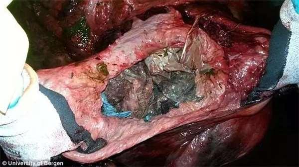 去年在挪威西部海岸,人們發現了一條巨大的鯨魚在沙灘擱淺,科學家解剖後發現:鯨魚的胃裡沒有絲毫食物,卻被30個塑膠袋所塞滿,其中最長的塑膠袋,長度甚至達到了2公尺半!