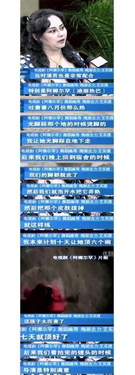 這部劇的拍攝環境很艱苦,熱巴也受了不少苦:燙脫皮的地板比指壓板可狠多了。