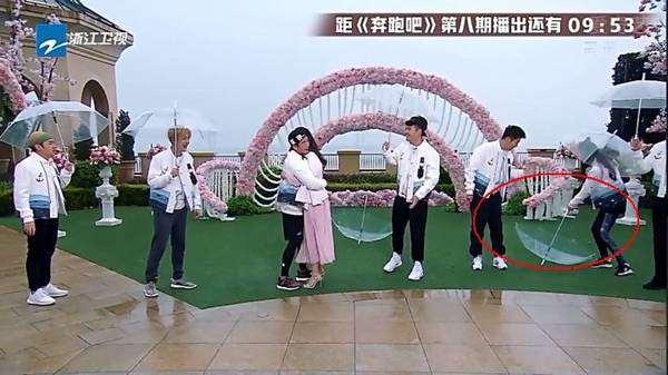大家都在歡迎Angelababy的回歸,卻沒看見一邊的熱巴,默默幫李晨撿掉在地上的雨傘。