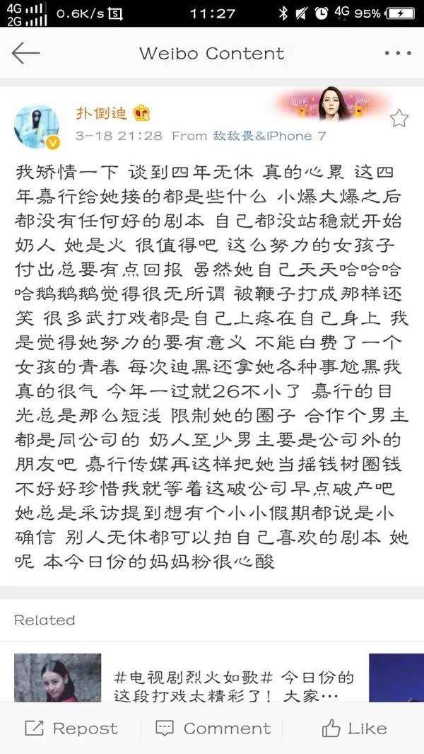 但是熱巴就做不到這一點,迪麗熱巴賺不賺錢,拍不拍戲,接什麼戲,都牽扯到老闆和公司的利益。