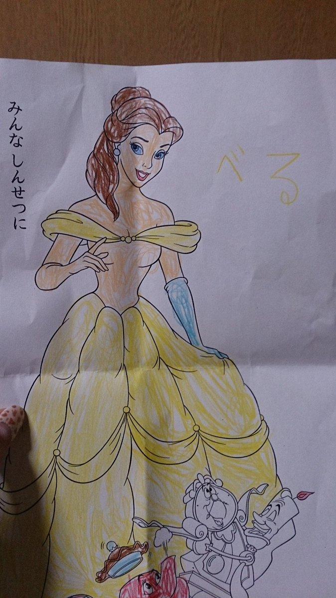 但萬萬沒有想到,這位媽媽當時看到女兒所畫的貝兒後,卻直接笑到噴飯,原來她的女兒沒有把禮服中間同樣畫上黃色,而是直接用肉色取代,所以就讓貝兒直接變身成暴露狂啦!