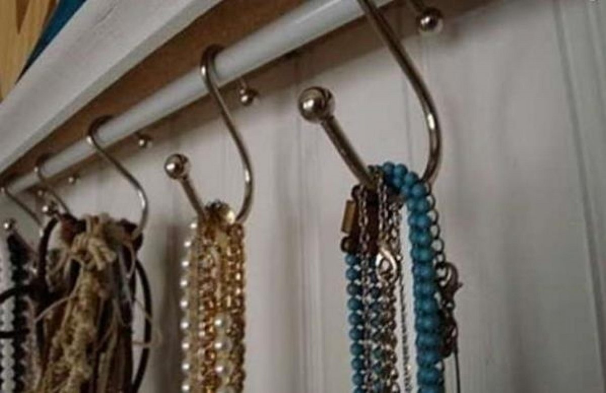 8、伸縮桿在加上掛勾,自製的首飾收納架就完成了!