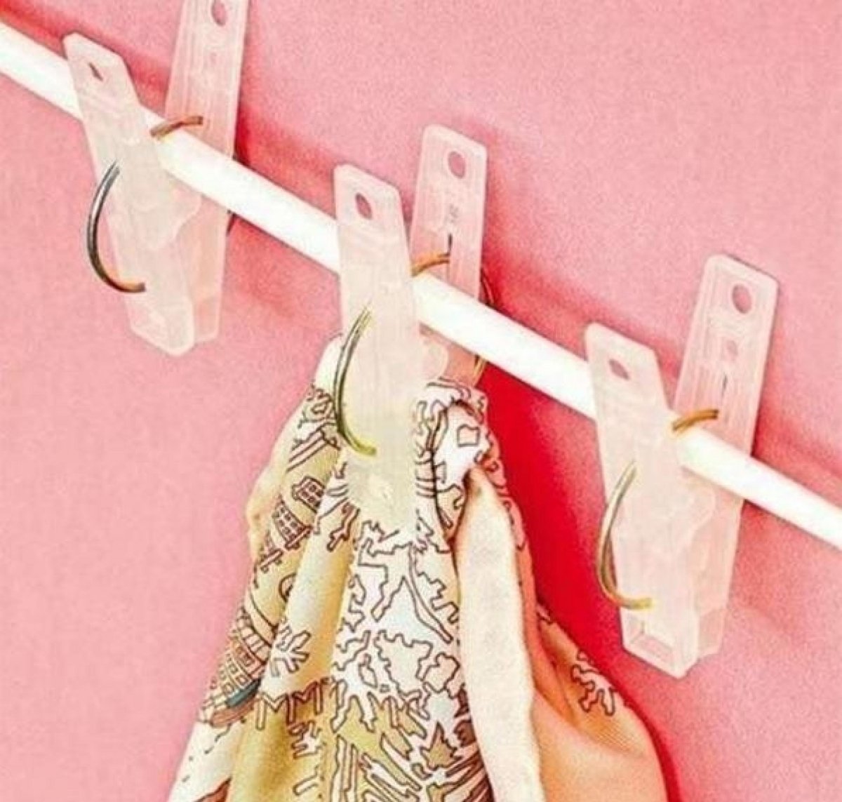 10、伸縮桿和夾子搭配,就能收納手帕或是毛巾類的東西了。