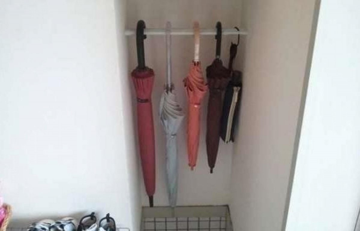 3、雨傘放在牆角總是一直掉下來?用伸縮桿掛著方便又美觀。