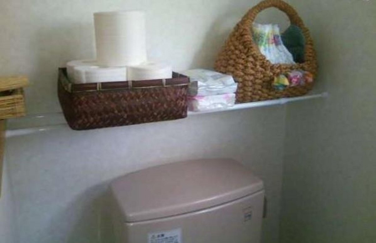 4、馬桶上沒有收納架?用伸縮桿做一個吧!