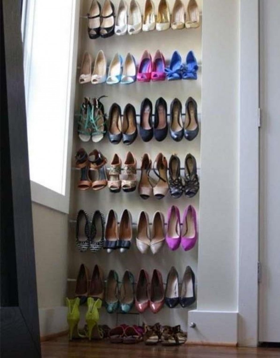 9、鞋子多到崩潰?用伸縮桿讓每雙鞋子都有自己的位置。