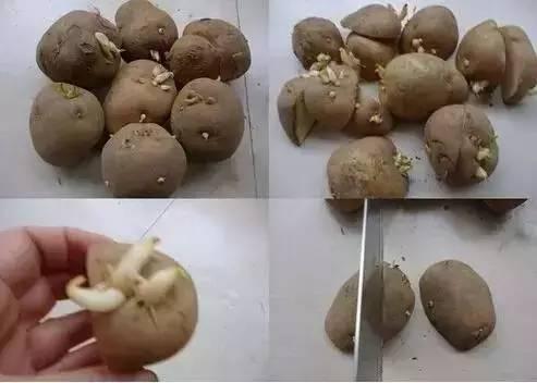 把馬鈴薯切成幾塊,但每一塊上都要有芽!