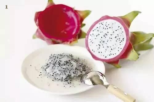 將火龍果切成兩半,用不鏽鋼湯匙輕輕將果肉刮入容器中。