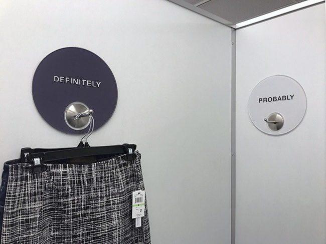 5.這間服飾店得更衣室有兩個掛勾,一個是「很有可能買」,另一個是「絕對會買」,只能說店家真得很高招啊!