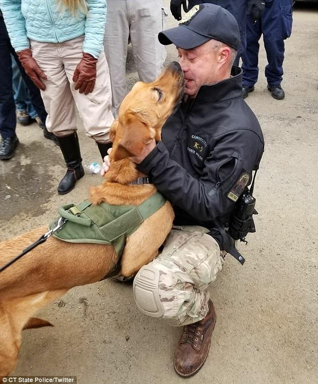 經過36個小時的地毯式搜索,牠終於在周五被找到,被發現的牠又渴又餓,爪子也被磨破了。警方發言人說:「經過獸醫檢查後,獵犬狀況不錯。」而堅持要拯救牠的「康尼狄格州警察隊長」大衛說:三年裡牠已經救了多人生命,牠不光是一隻狗,更是我們中的隊員。