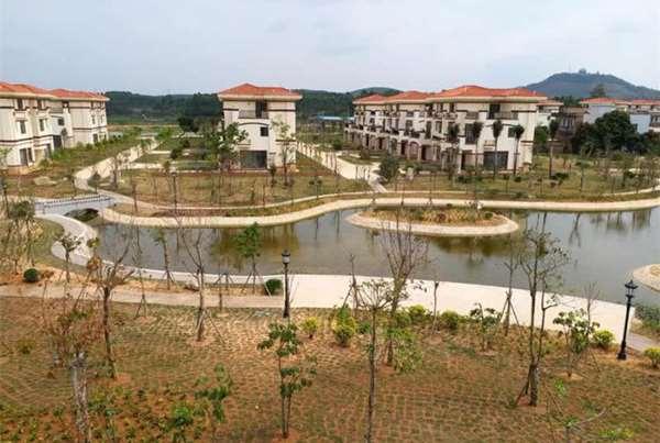 第一期的69棟別墅、138戶已經完成了內部裝潢,每戶都有5間房間、2個客廳,門前都配有停車位且已經種植了綠化花草。外面還有親水平台、籃球場、羽毛球場、戲台、文化廣場、涼亭等附屬設施,原本預期去年年底就交屋,工程卻因為村民而停擺至今。