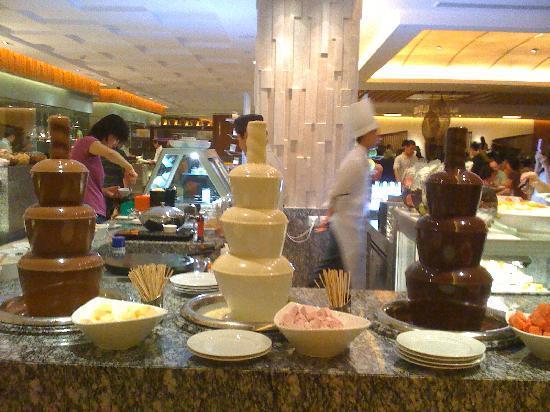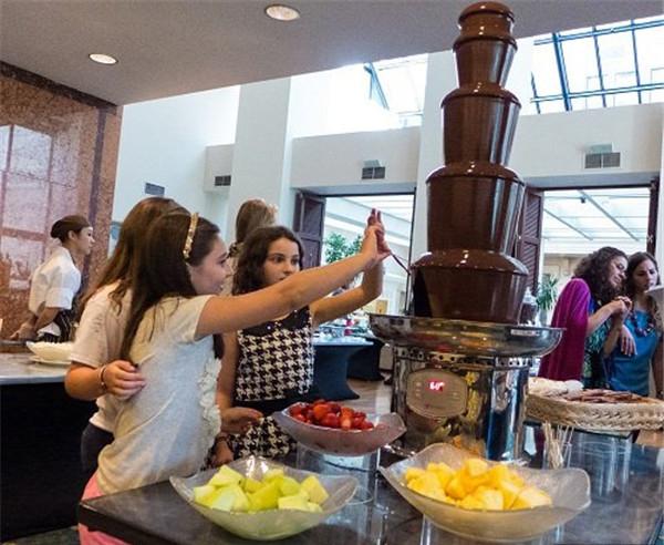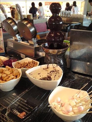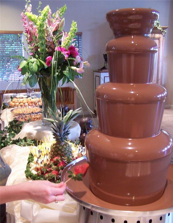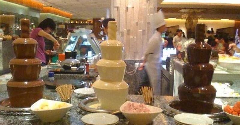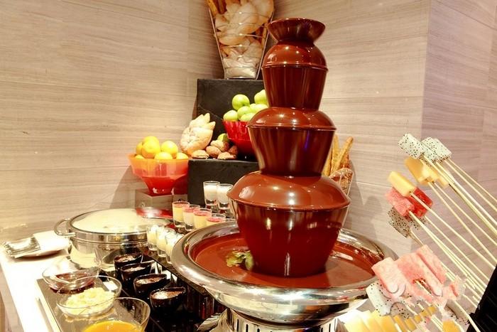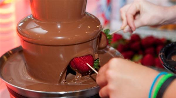 很多人在吃到飽餐廳看到「巧克力噴泉」總會忍不住少女心噴發,上前拿幾串水果去沾來吃一下!