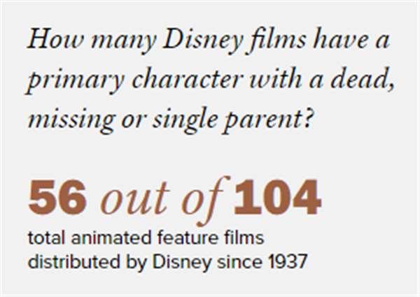 對此還有人專門去計算了一下,在迪士尼,要有一半左右的動畫作品裡面,主要角色父母不是死亡就是失蹤。