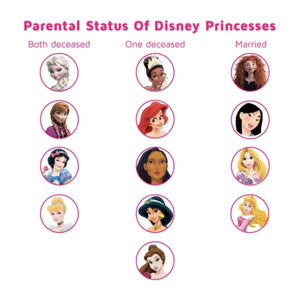 白雪公主、灰姑娘、艾莎和安娜公主,則要更慘一點,父母雙亡、無依無靠。