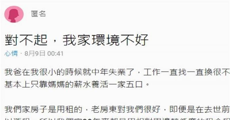 然後我就退群組了。其實我心裡不是沒有怨過家裡環境,但我媽媽很辛苦、