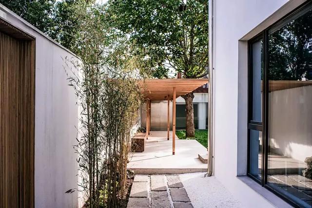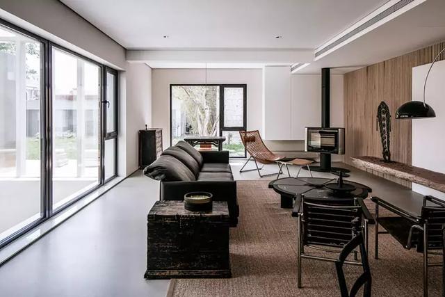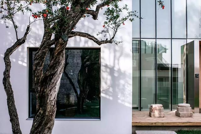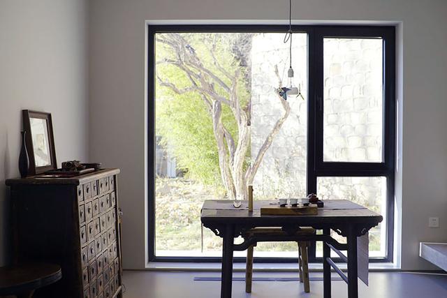 我們在院子裡種了一棵老石榴樹,那麼客廳茶室的窗戶就開得比較小,像一個框景,有一種中國園林的感覺。