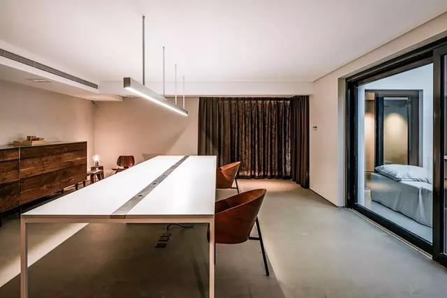 傢具選擇了看起來比較輕盈的,比如有很細的鋼腿或很薄的桌麵。